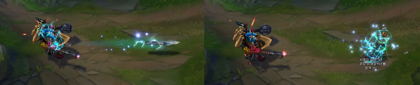 치명타 공격의 경우 럼블이 더 큰 동작을 취하게 됩니다.