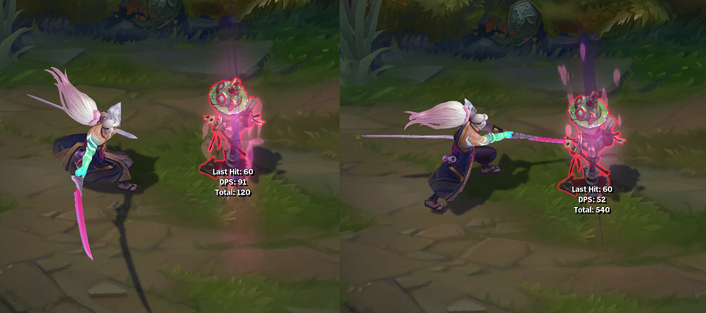 칼이 야스오의 팔과 같은 푸른색으로 변하게 됩니다.