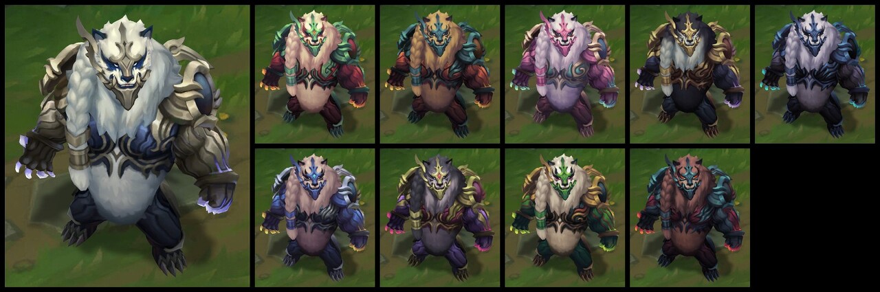 가격: 520RP (클래식) 출시일: 2011년 11월 29일 스킨 시리즈: 천둥 군주 천둥 군주 시리즈 천둥 군주 볼리베어 (2011년 11월 출시) 천둥 군주 오른 (2017년 8월 출시) 일러스트 스킨 설명: 인간 시대 이전