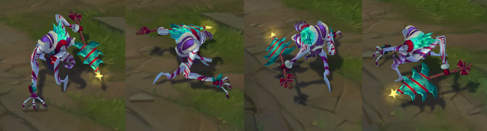 가격: 975RP (에픽급) 출시일: 2012년 12월 14일 스킨 시리즈: 눈맞이 축제 눈맞이 축제 시리즈 2010 눈맞이 축제 고요한 밤의 소나 루돌프 코그모 막대사탕 미스 포츈 반품된 아무무 봉제인형 뽀삐 산
