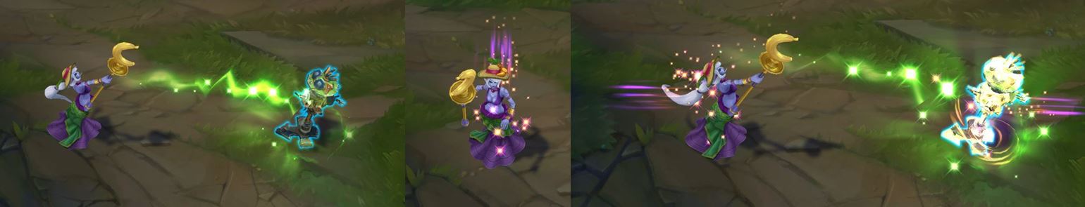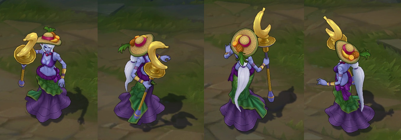 스킨 콘셉트에 맞춰 투사체가 황금빛 바나나로 변경됩니다.