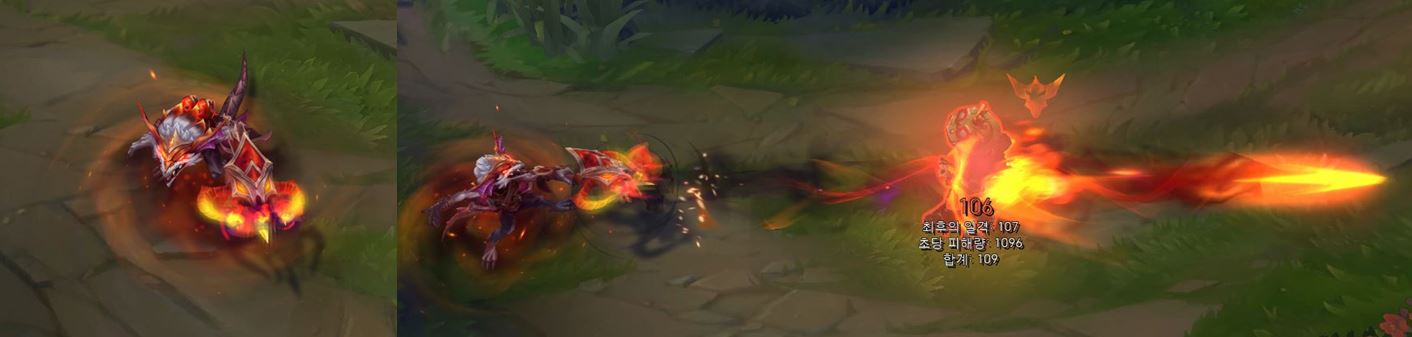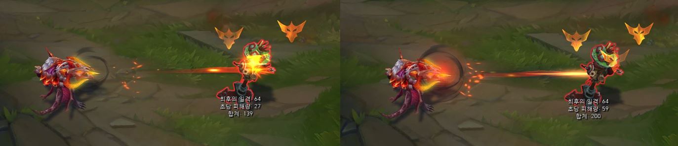 적중한 적에게 불길 이펙트가 더 크게 나타나게 됩니다.